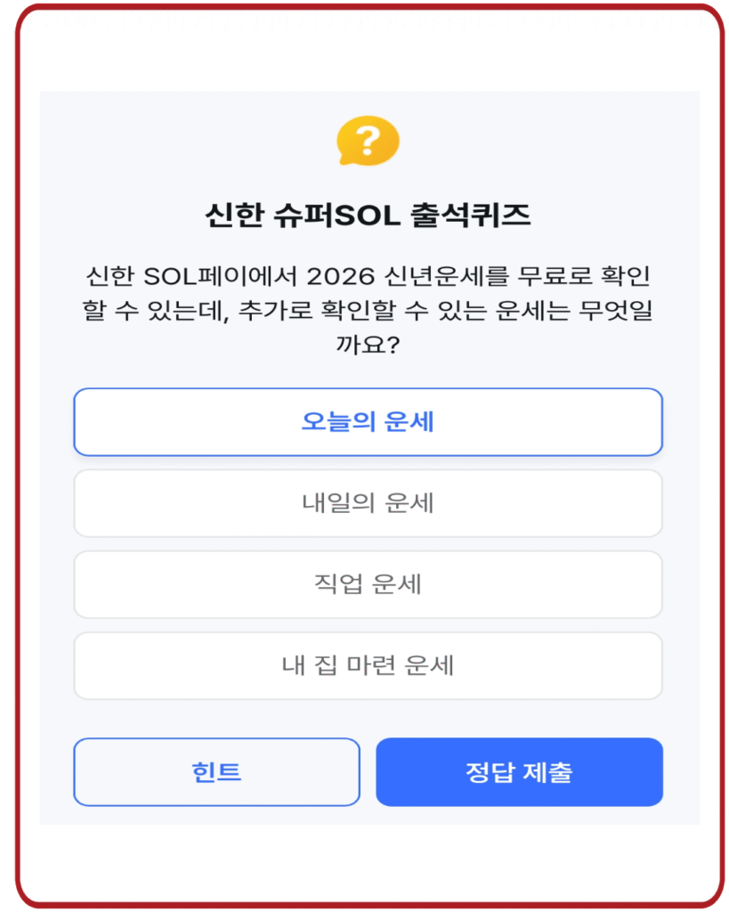 ❗ 신한 슈퍼SOL 출석퀴즈 2월 14일 정답