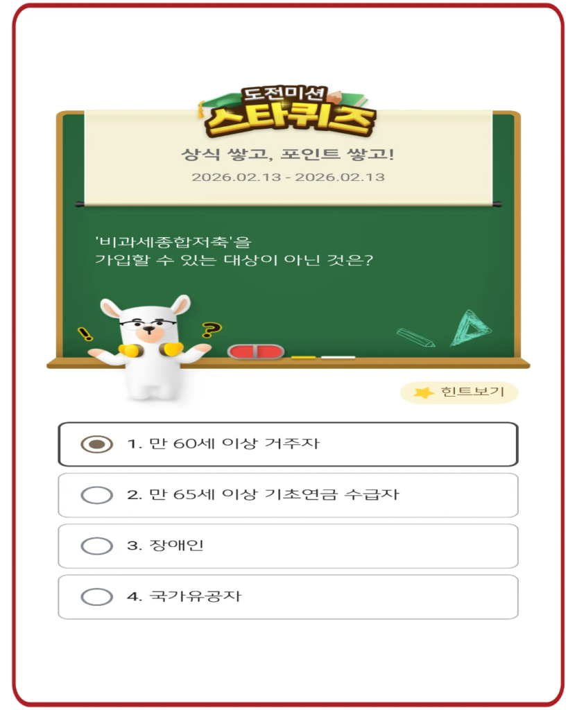 ❗ KB스타뱅킹 스타퀴즈 2월 13일 정답