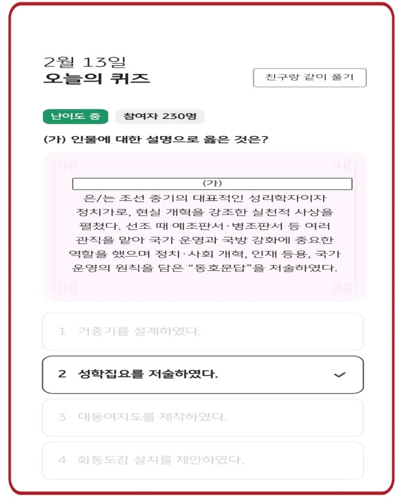 ※ 한국사퀴즈는 한국사 상식 기반 문제로 구성되어 있으며,