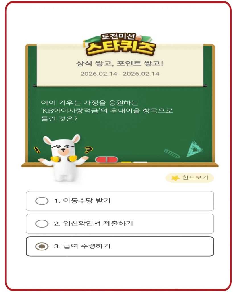 ❗ KB스타뱅킹 스타퀴즈 2월 14일 정답