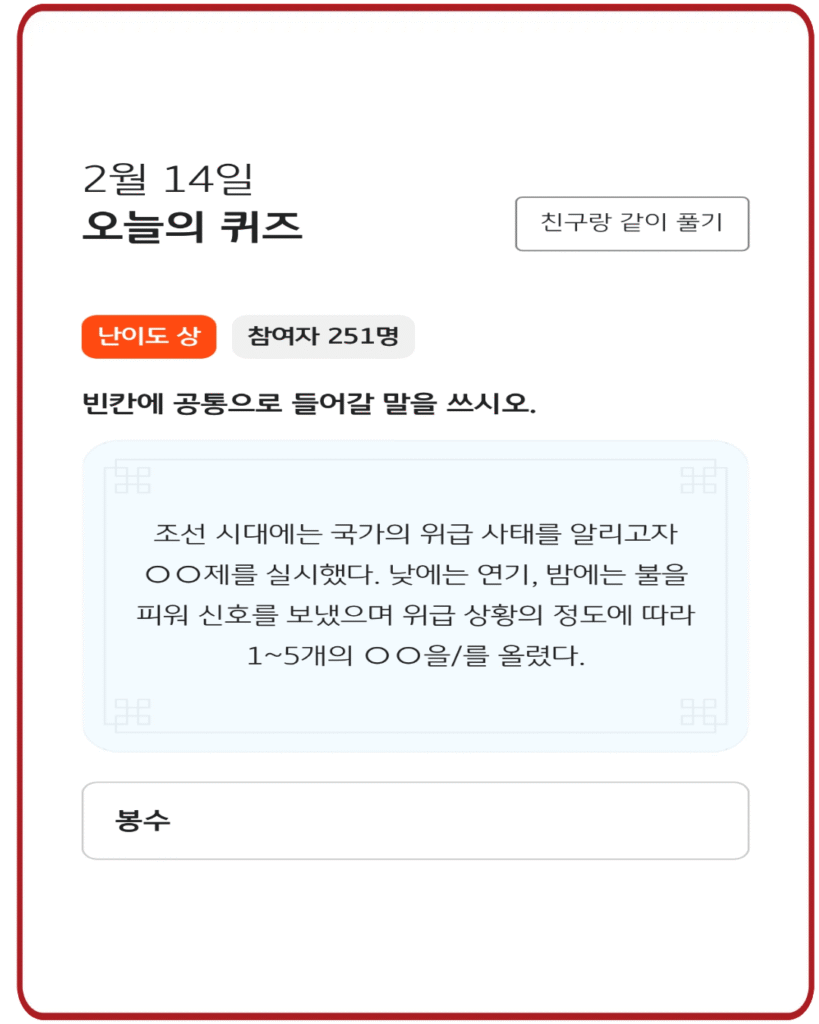 👉 오늘 정답 : 봉수