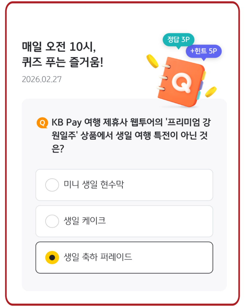 KB Pay 오늘의 퀴즈 2026년 2월 27일 정답을 찾고 계신가요?