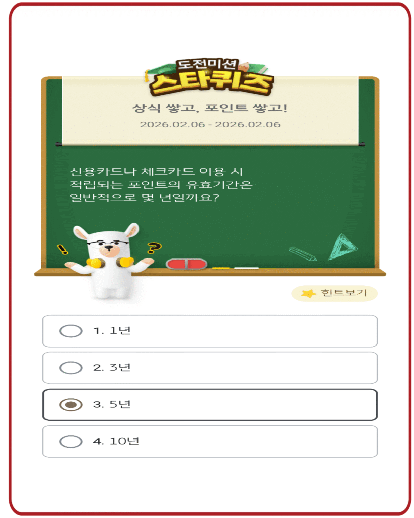 ❗ KB스타뱅킹 스타퀴즈 2월 6일 정답