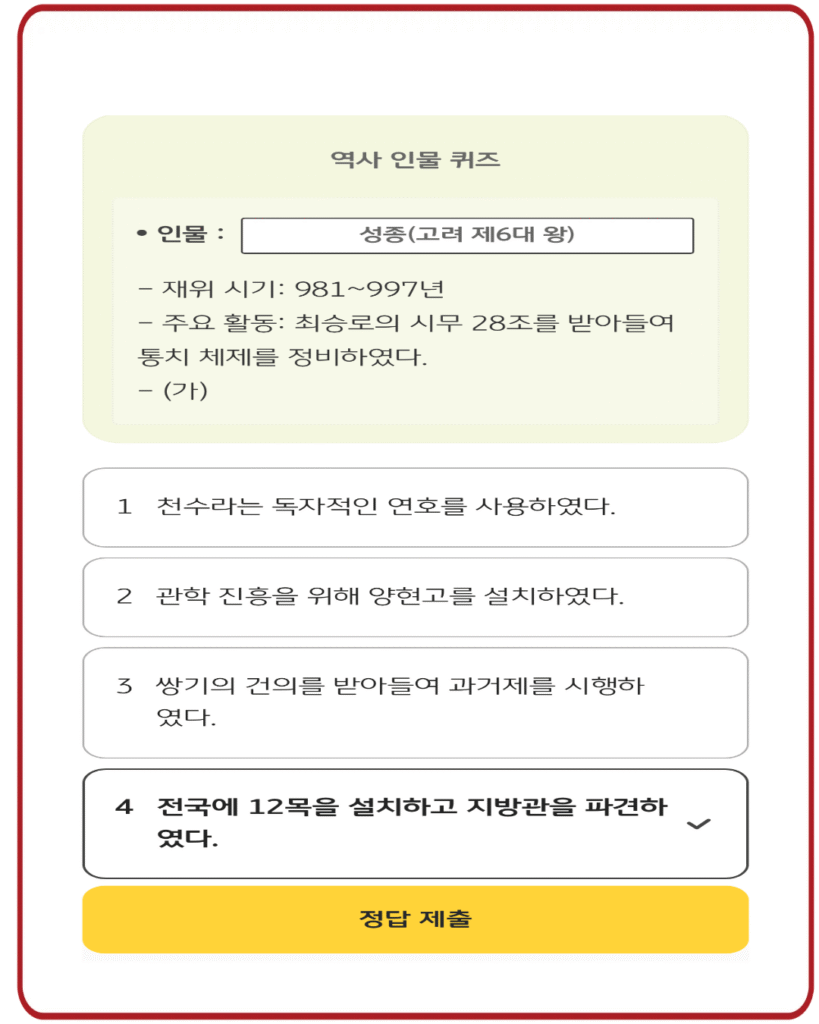 ※ 한국사퀴즈는 한국사 상식 기반 문제로 구성되어 있으며,